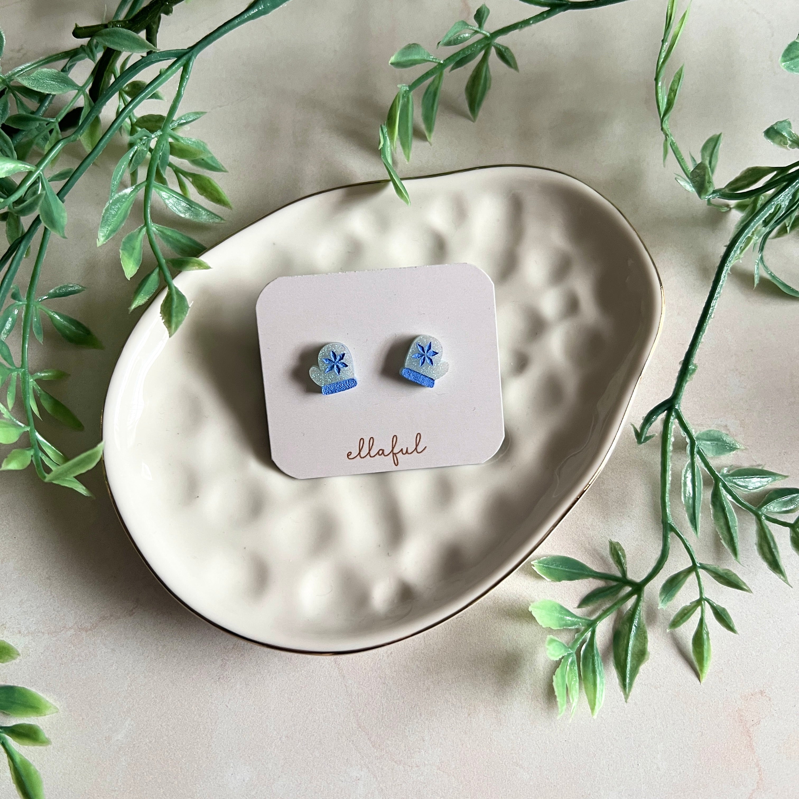 Cute mittens stud earrings to add to your winter outfits. The mitten design is hand drawn and each mitten is hand painted to highlight the details of the mittens.